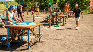 Overview: One castaway paints a target on their back when they attempt to pit their tribe mates against one another; another tribe dives their way to victory after piecing together a big win in the immunity challenge.