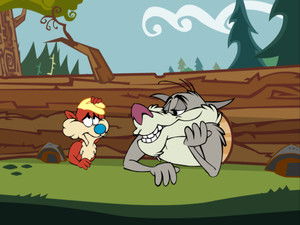 Thomas Timber Wolf is a timber wolf who fancies himself a smoothly sophisticated predator. However, for all his smooth talking ways, Thomas has a great deal of trouble dealing with his wilder neighbors. The fact that he reflexively roars "TIMBER!" and causes a tree to fall on his head whenever he says his name does not help either.